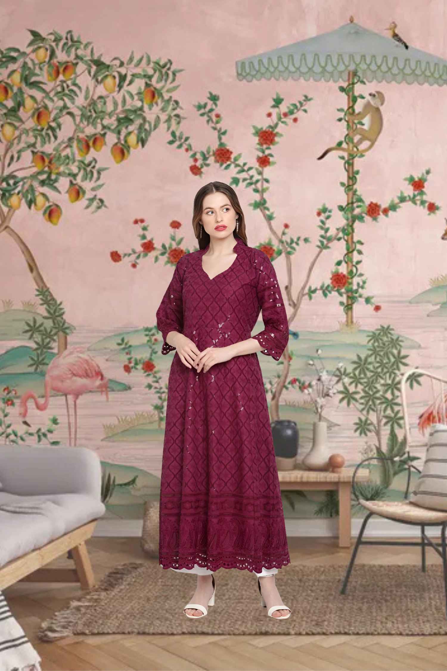 Step into the Amethyst Dreamscape, where the boundaries between reality and dreams blur in a purple haze. This cotton kurti is embroidered with intricate designs that evoke the essence of a peaceful, magical world. Perfect for the woman who believes in the magic of twilight and the allure of the night.