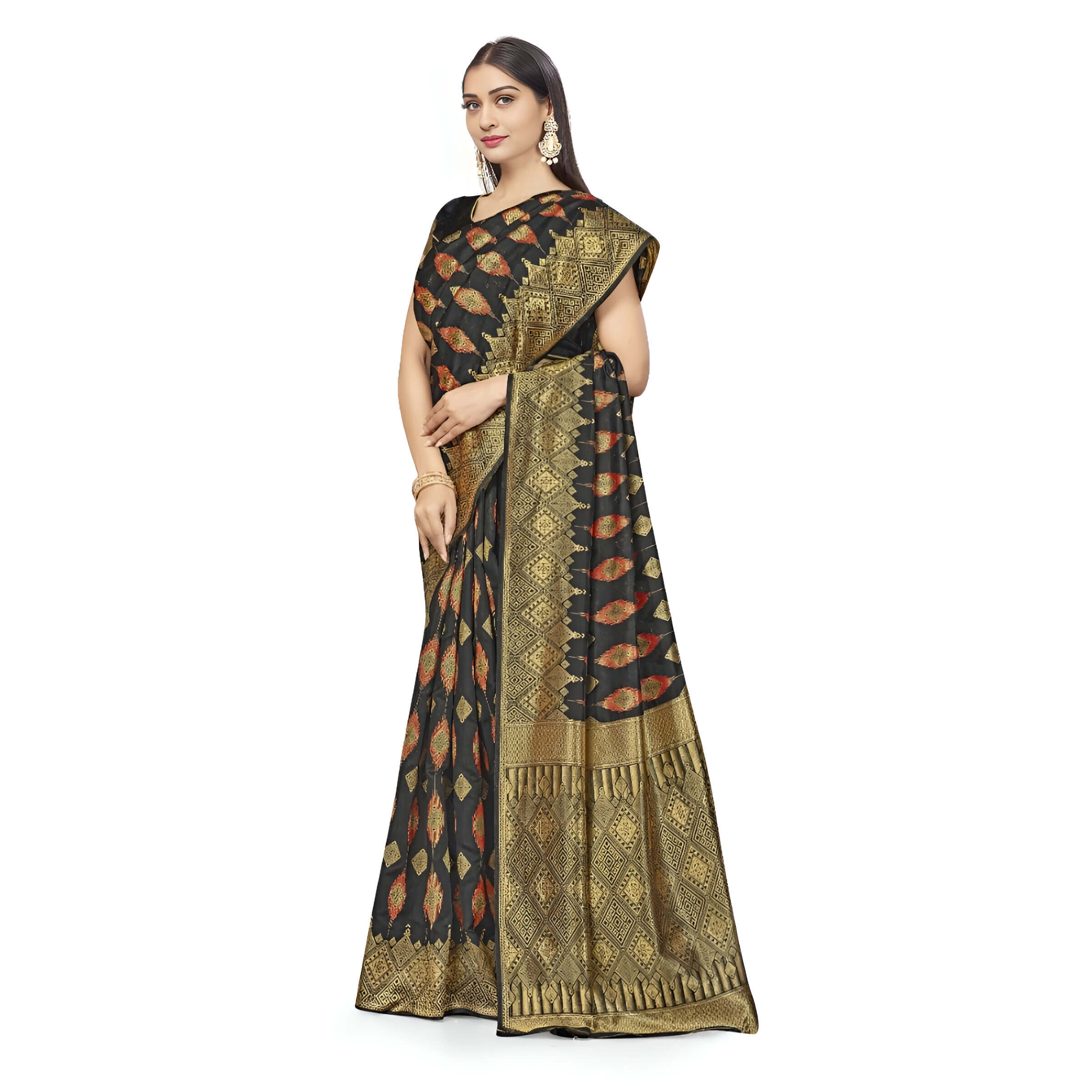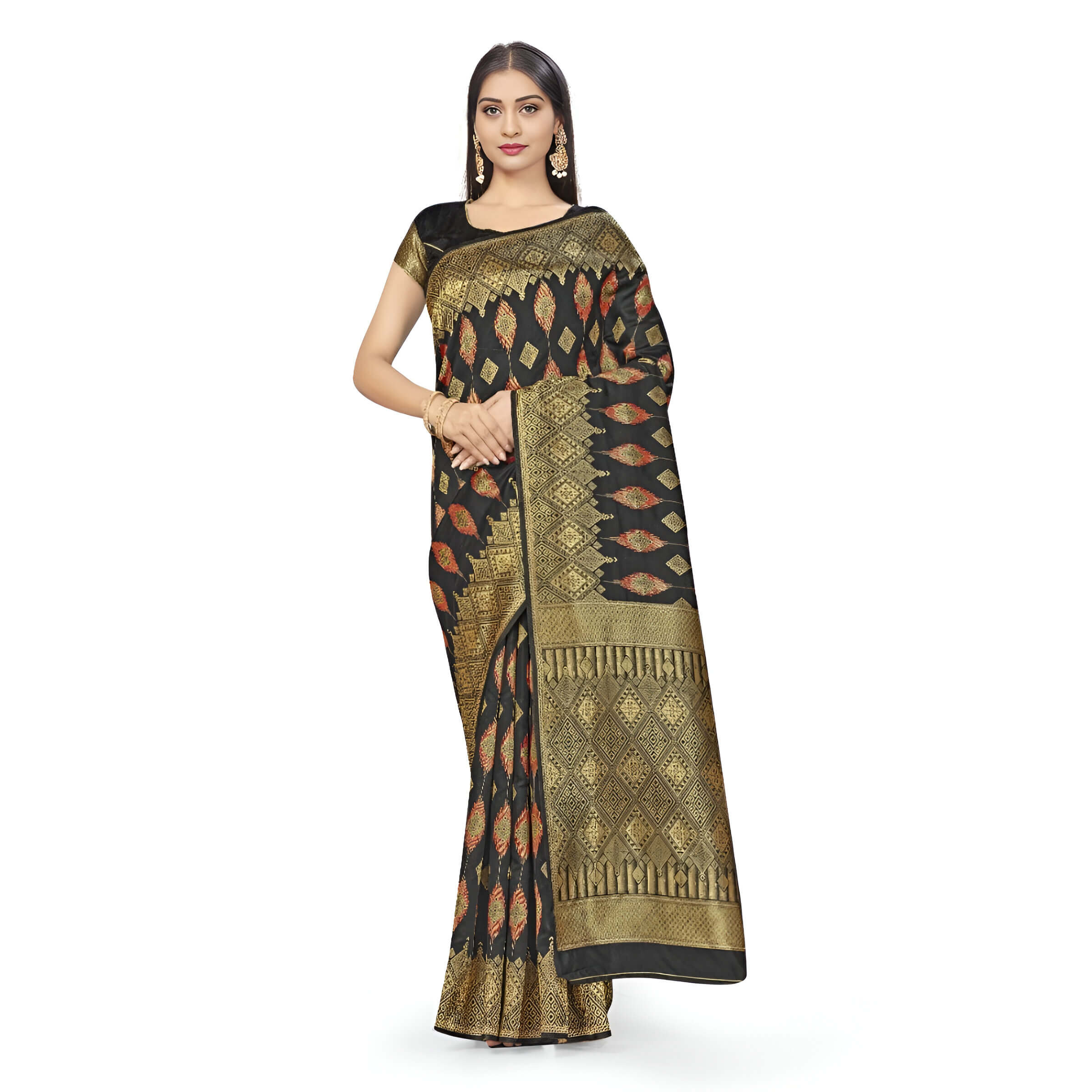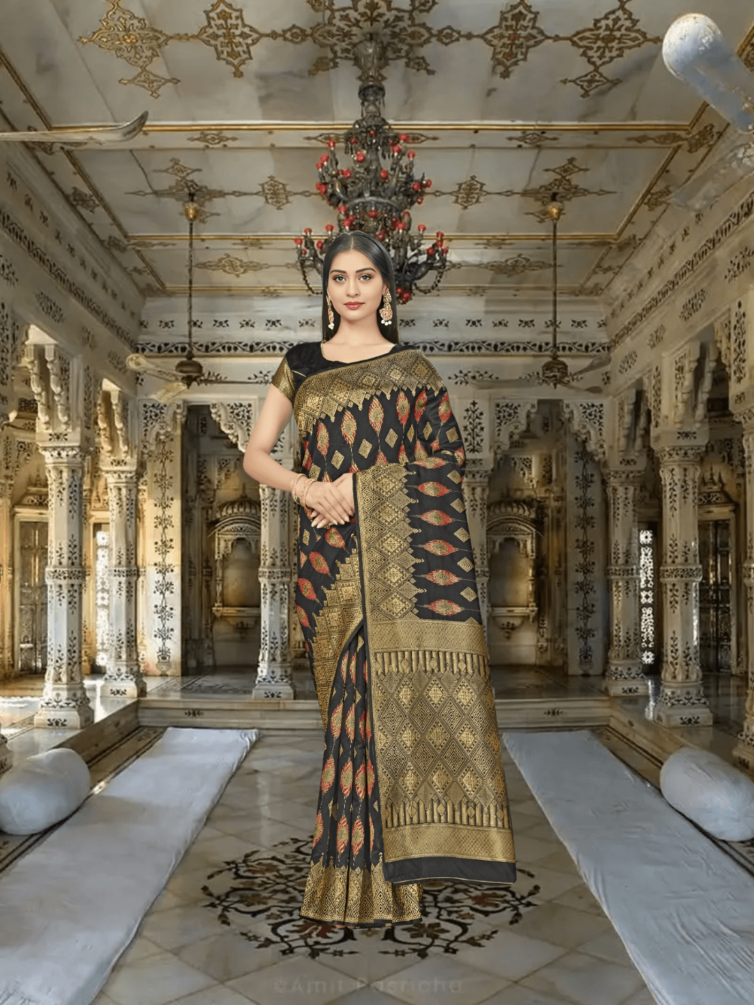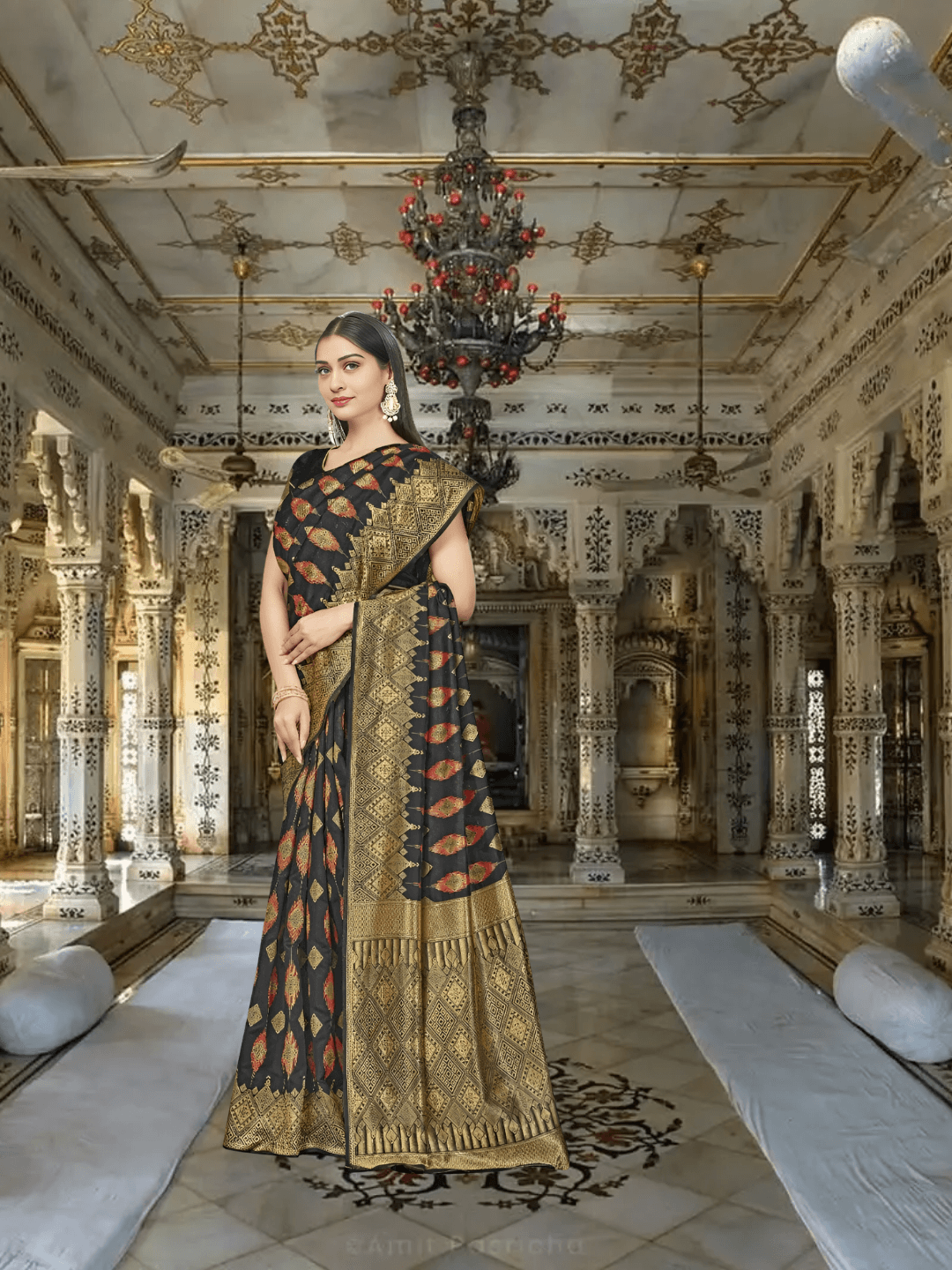 "Blackout Rhapsody" Silk Banarasi – Lightning-Strike Gold Borders