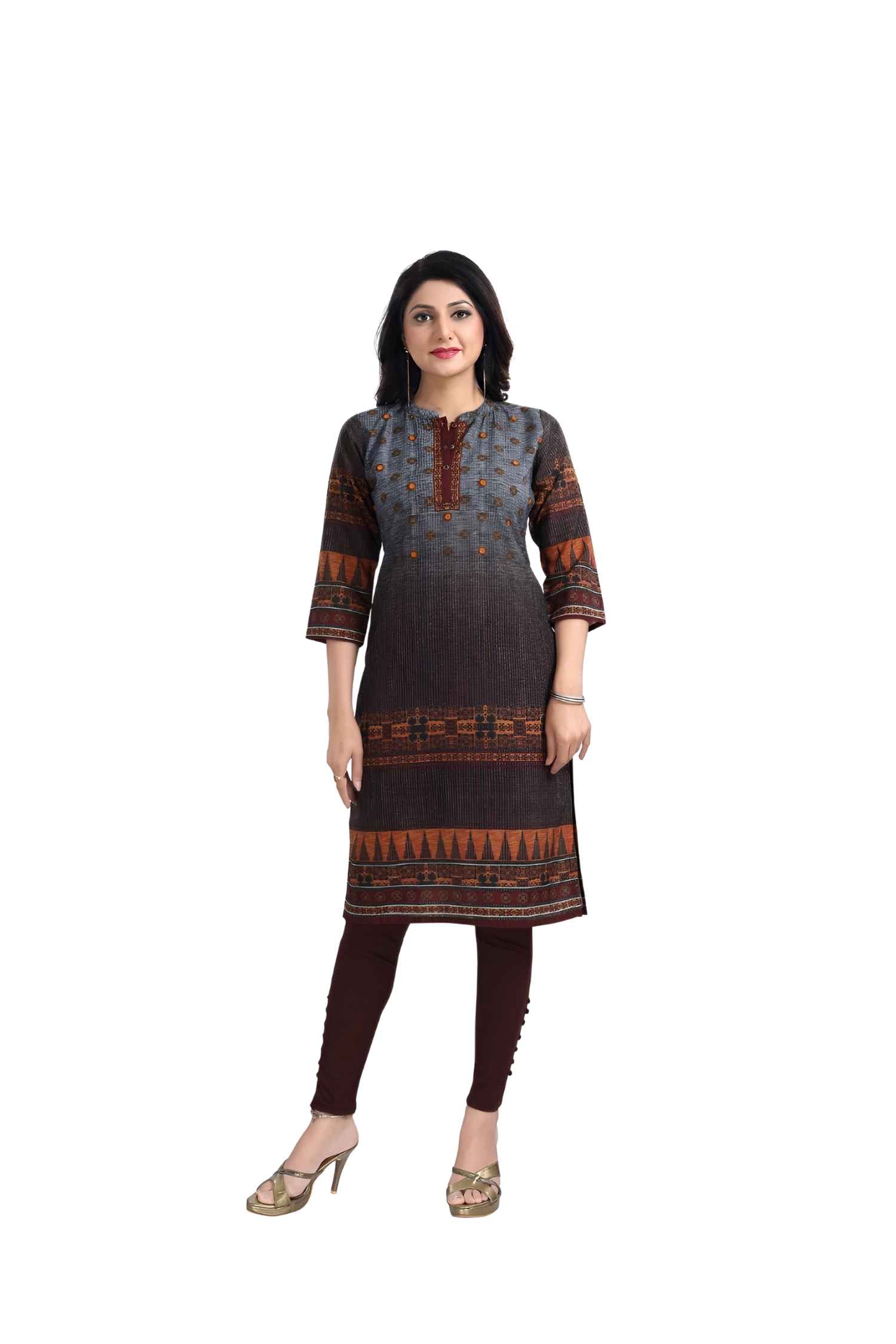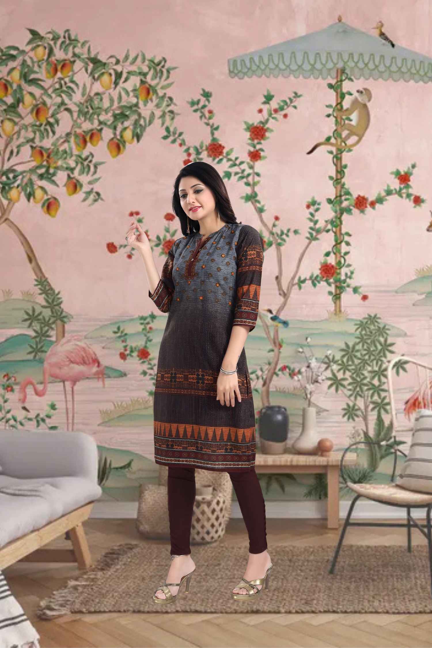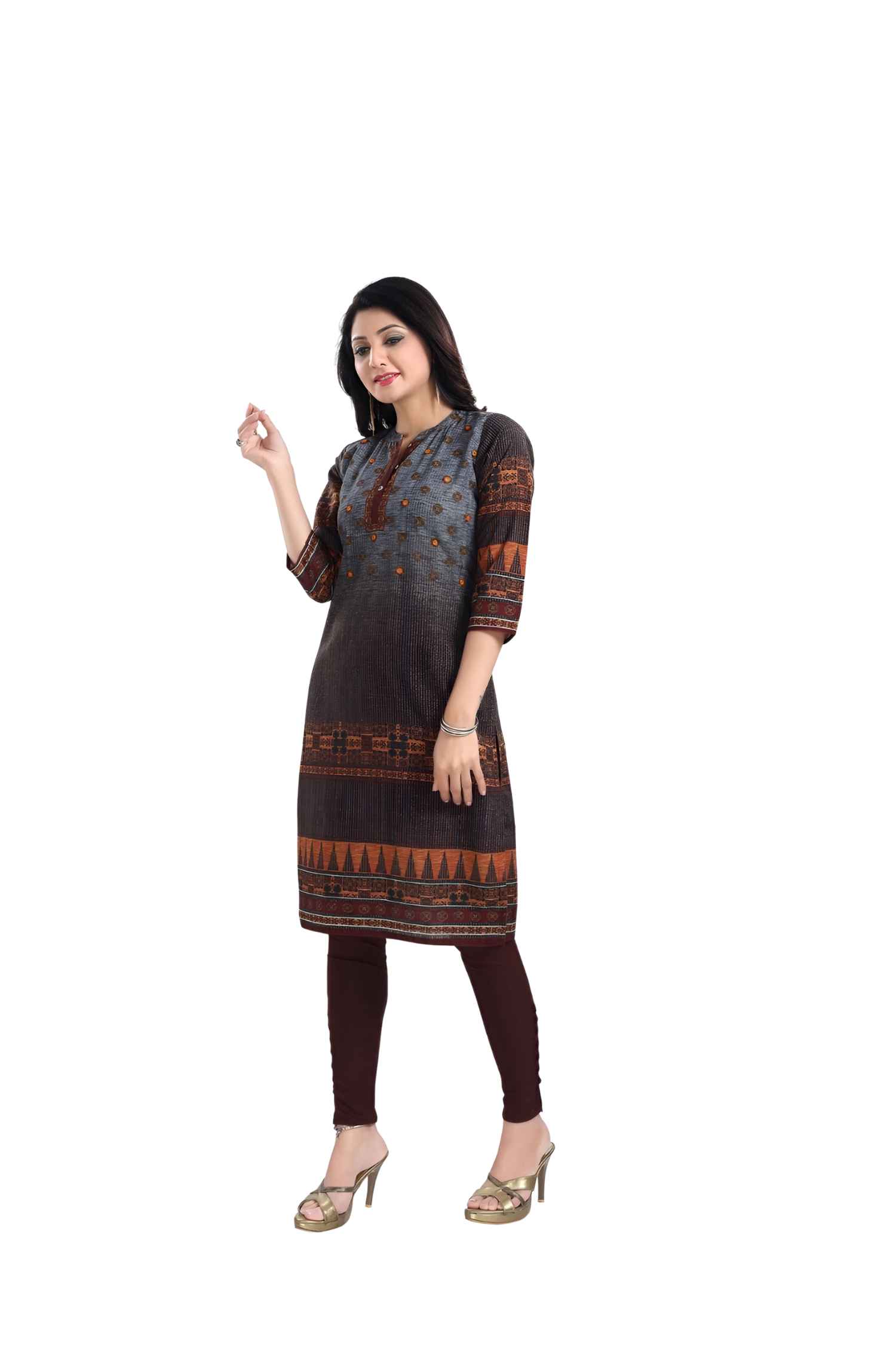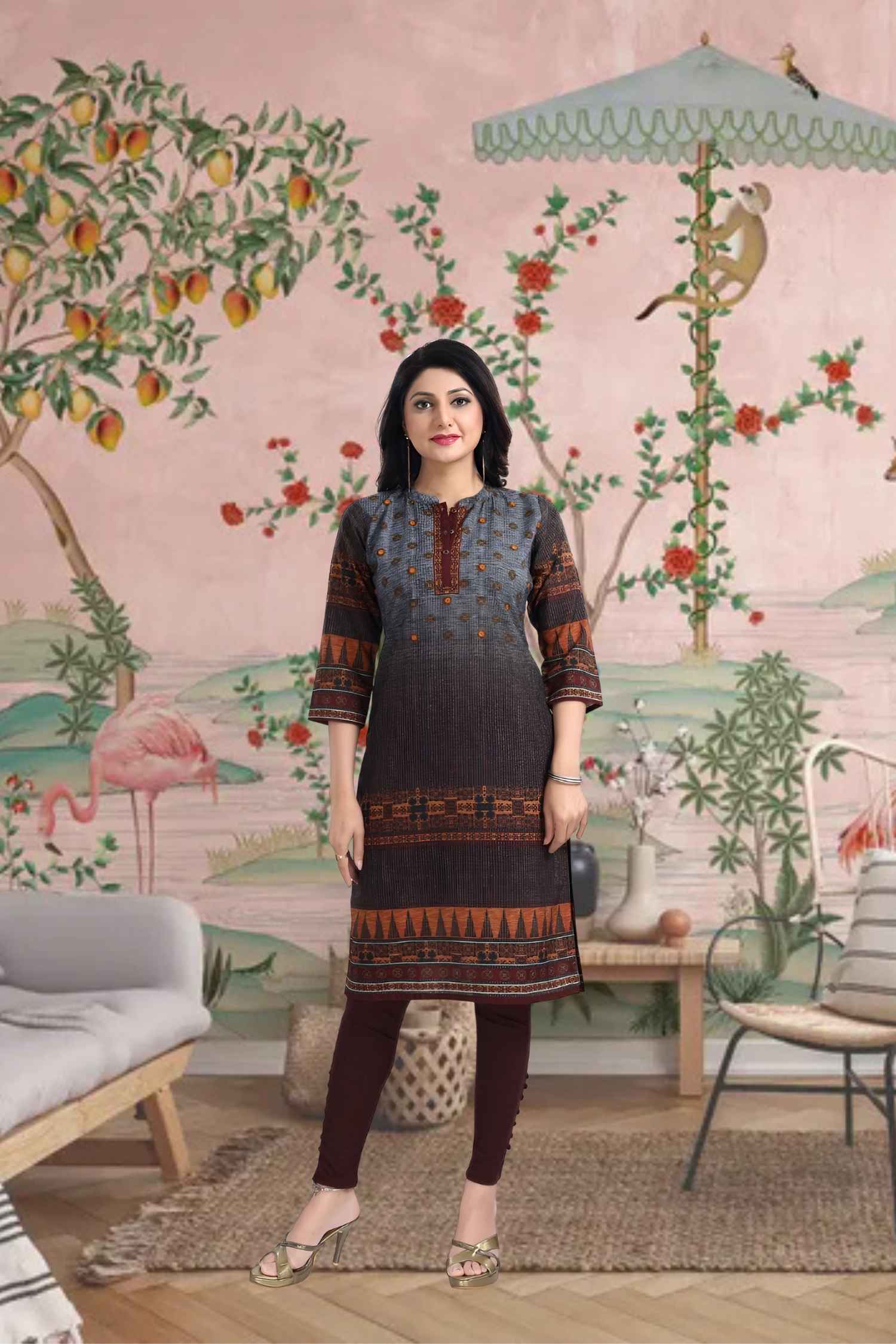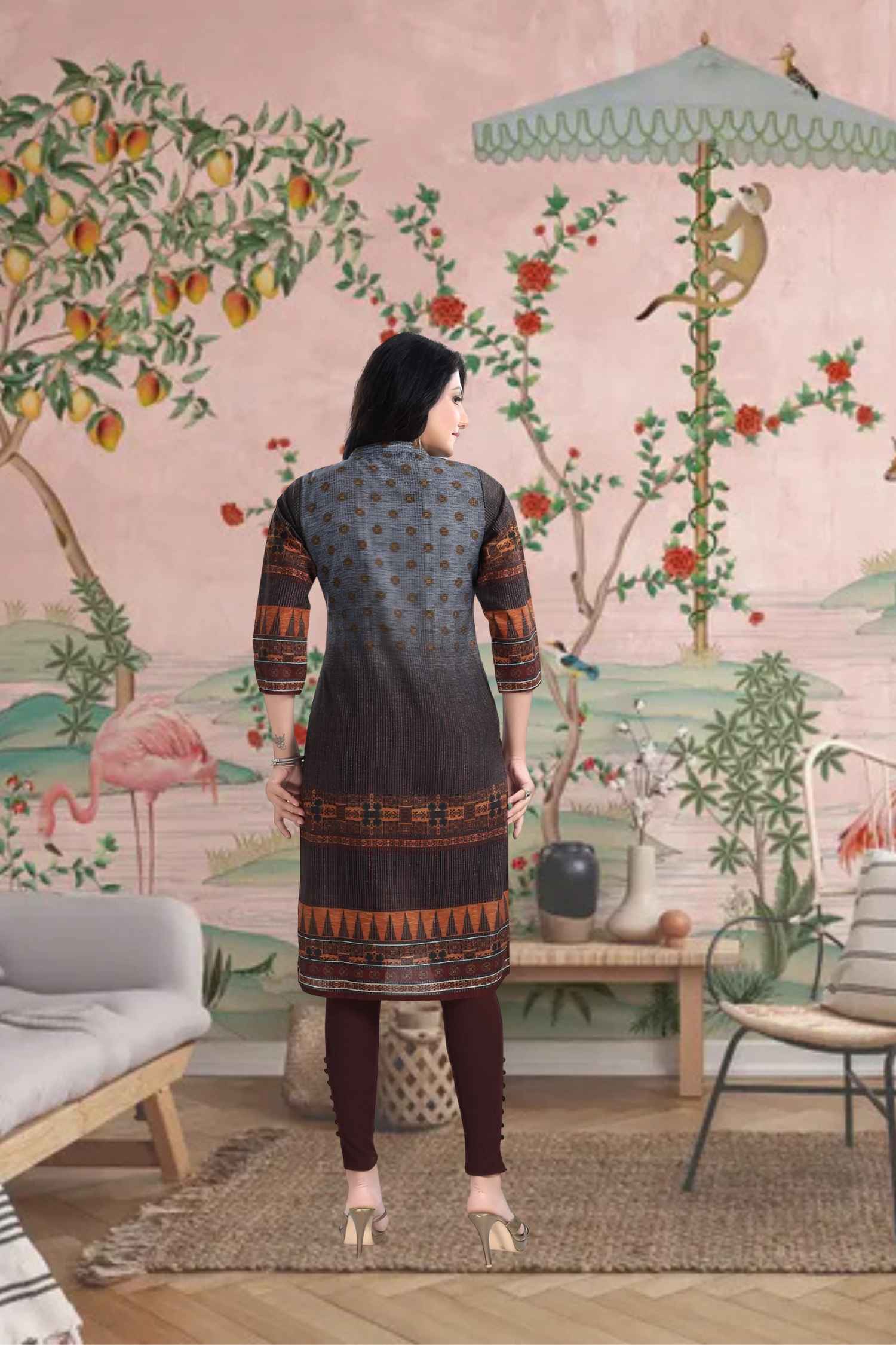 This kurti is sunlight filtered through amber ✨… 3/4 sleeves that ripple like heatwaves, a hemline cut to mimic horizon lines, and a hue that exists only when cinnamon and dusk collide. For the woman who wears time, not trends.