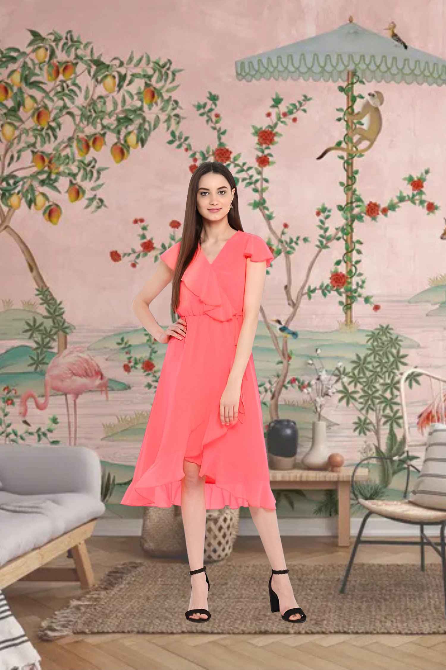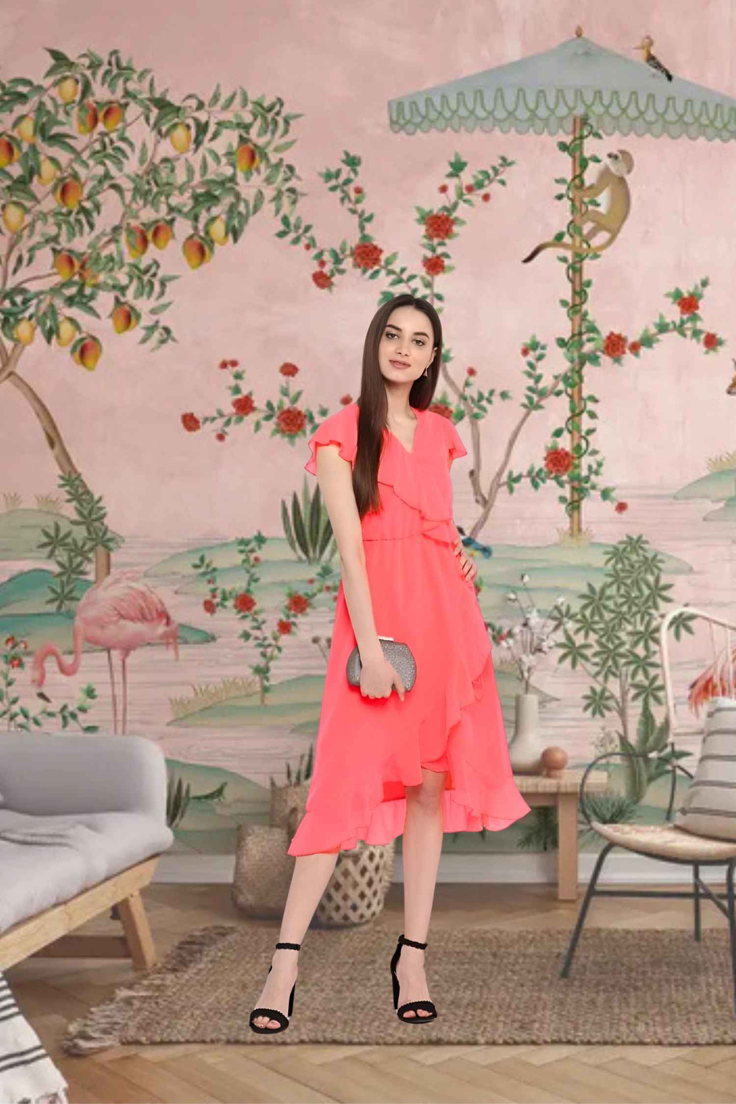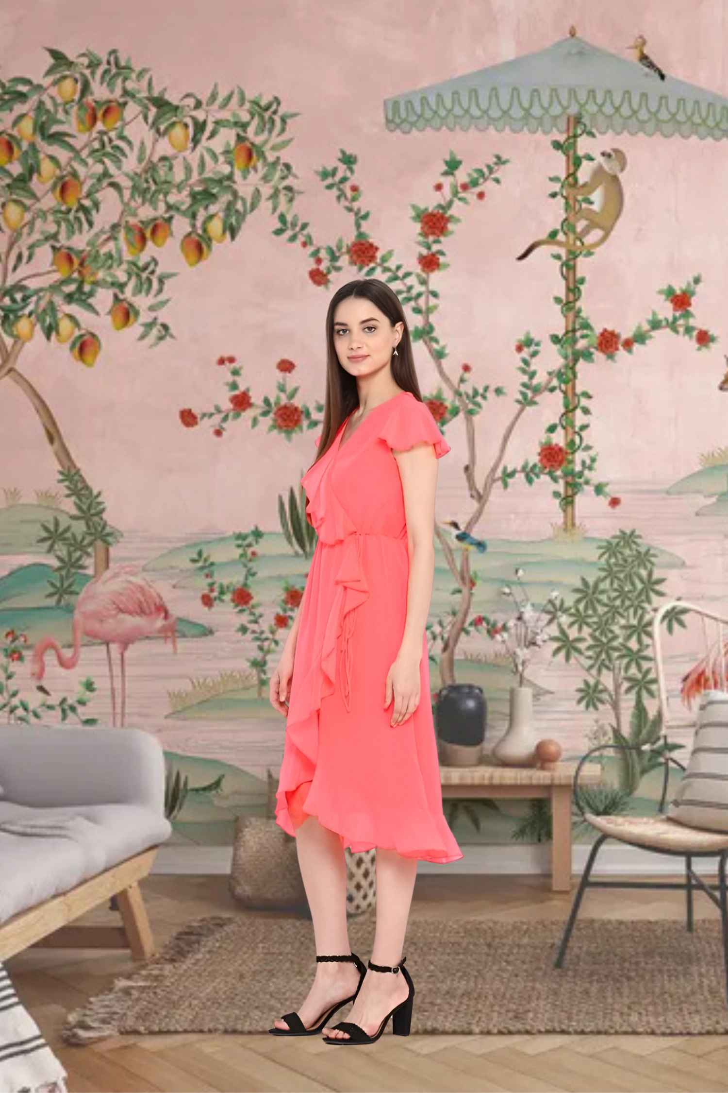 The Coral Sonata doesn’t just flutter—it conducts ocean breezes into wearable melodies. A pink polyester symphony where each ruffle rises and falls like tidal sheet music.