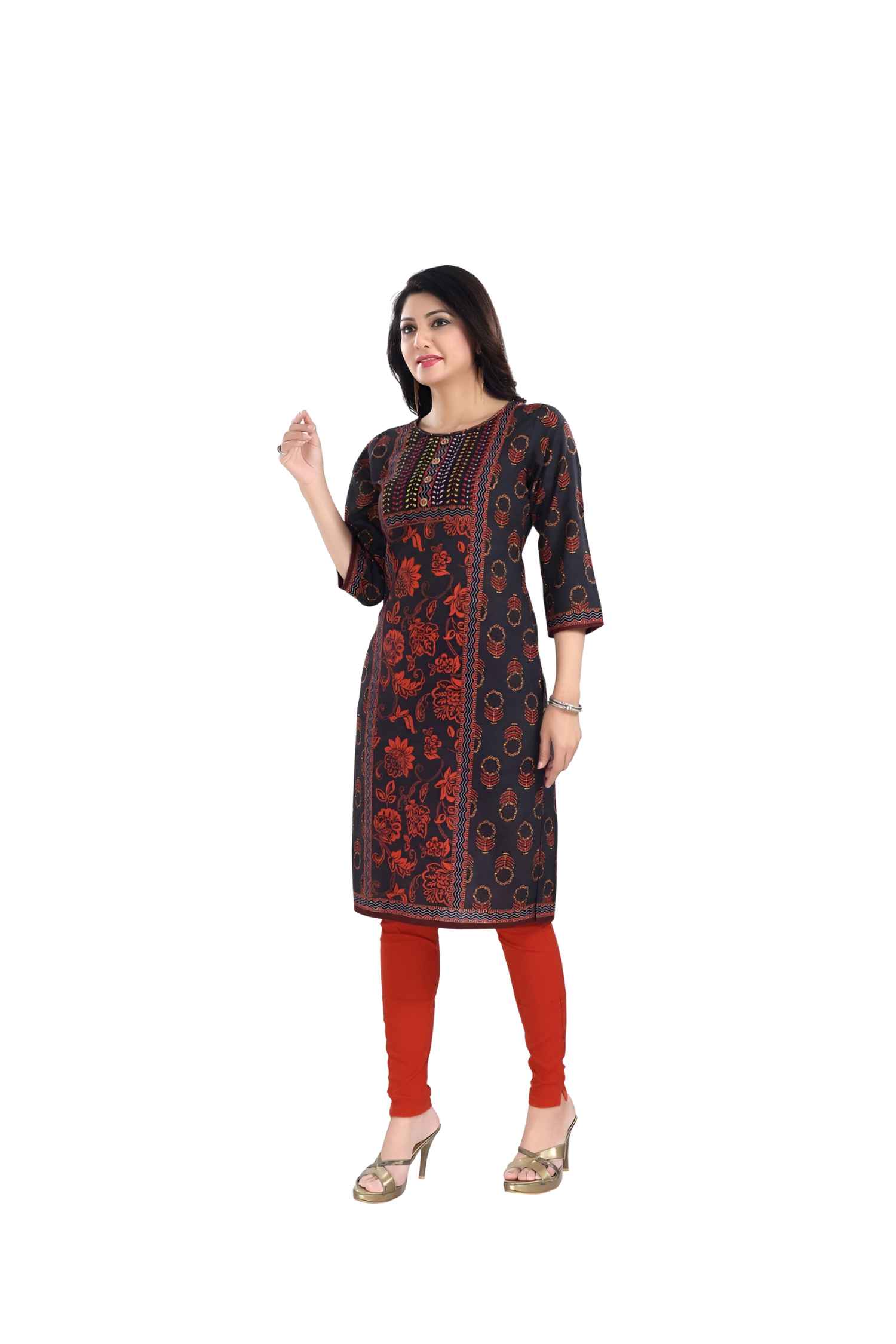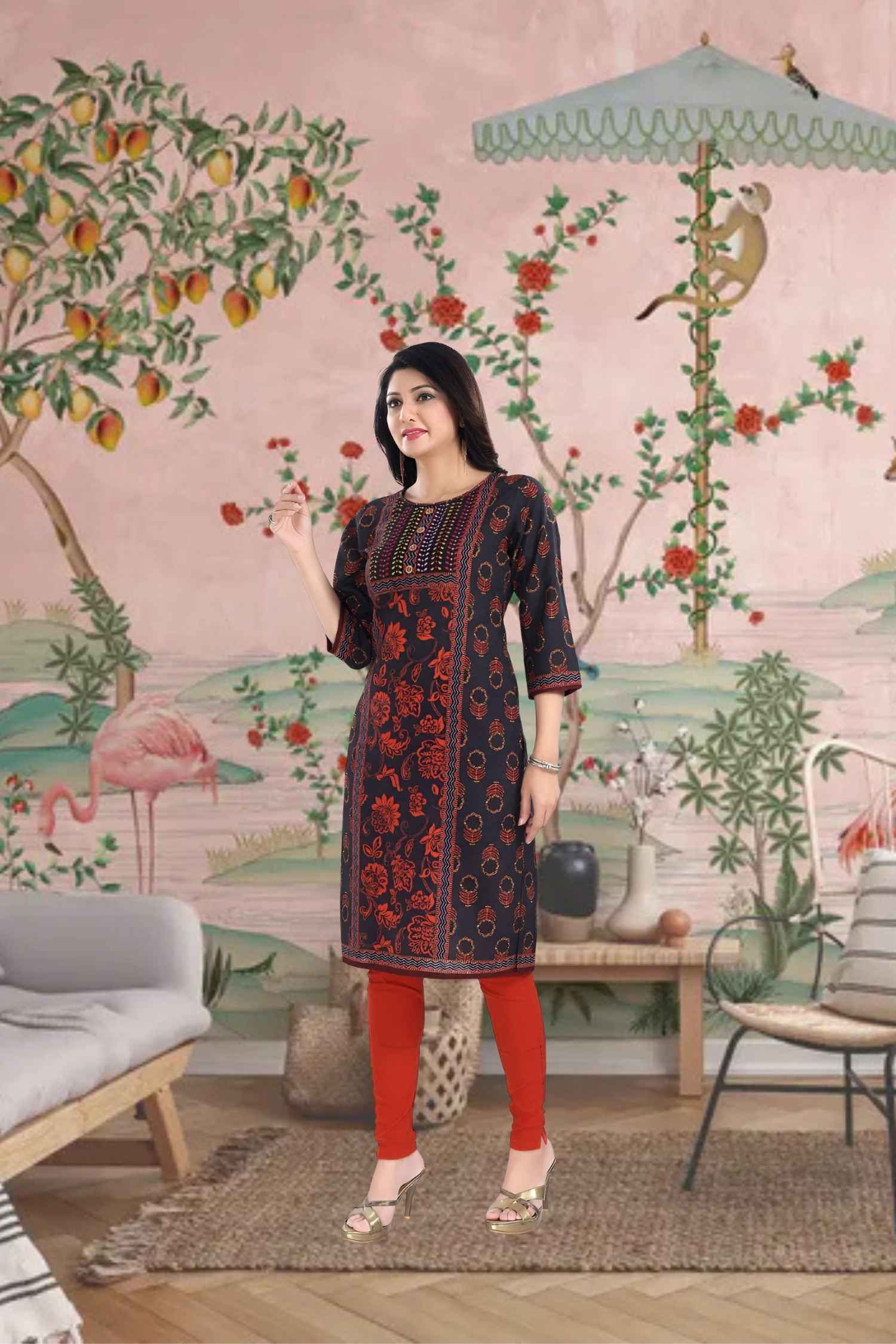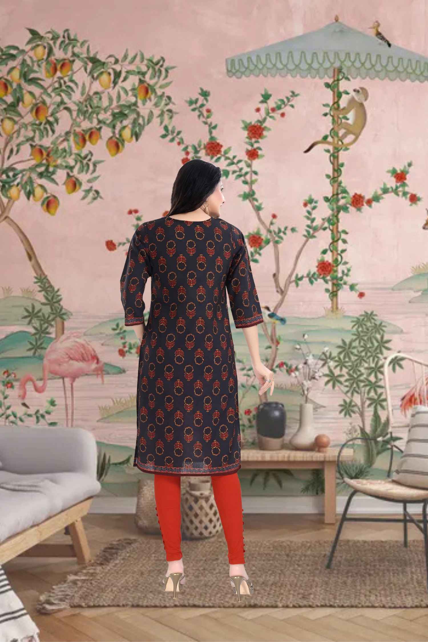 This kurti drapes like a fading sonnet… 3/4 sleeves that catch the last subway light, a hemline cut to echo rain-slicked streets, and a hue born when concrete learns to blush. For those who wear urban poetry.