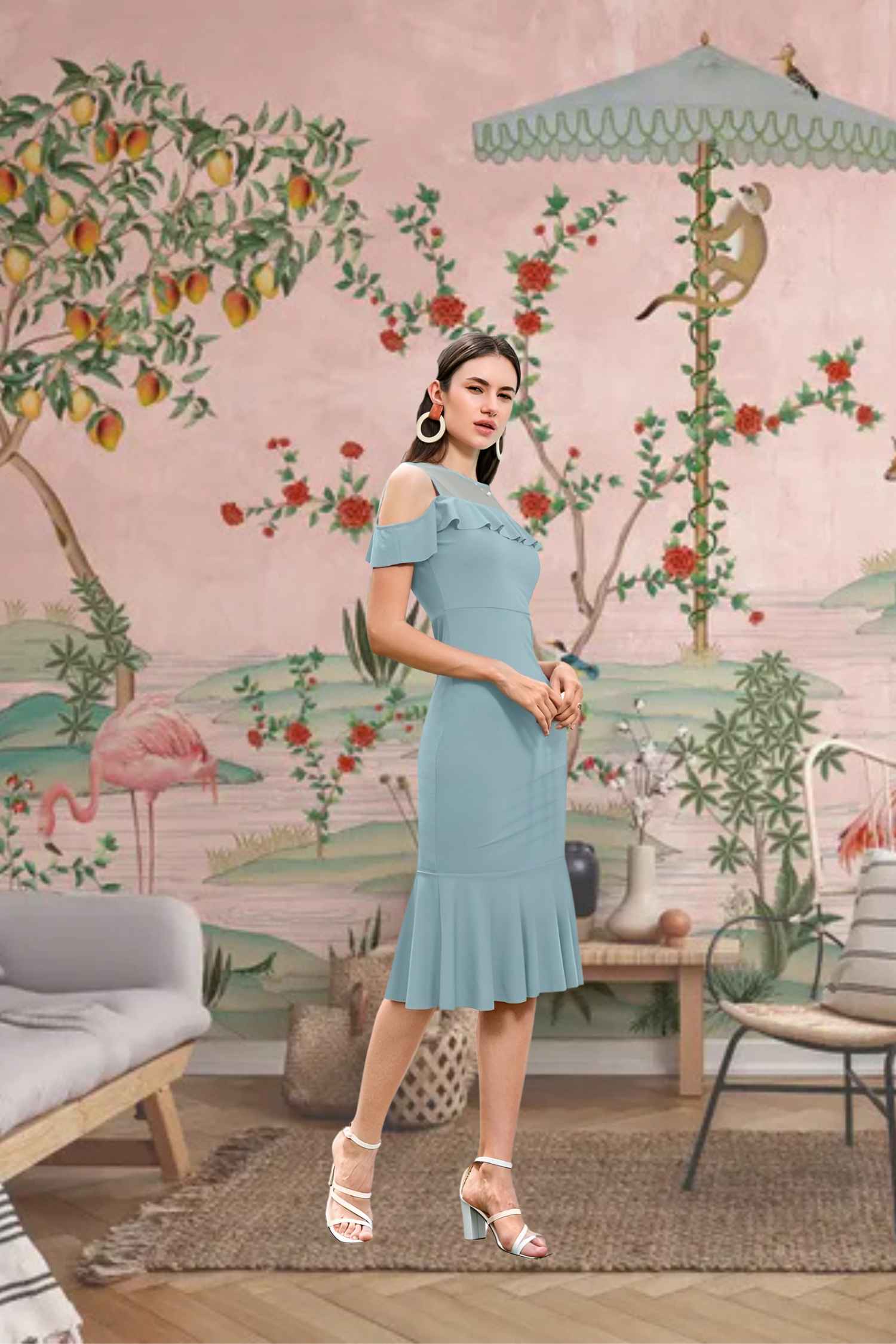Glacier Whisper – Frost-Kissed Shoulder Dress