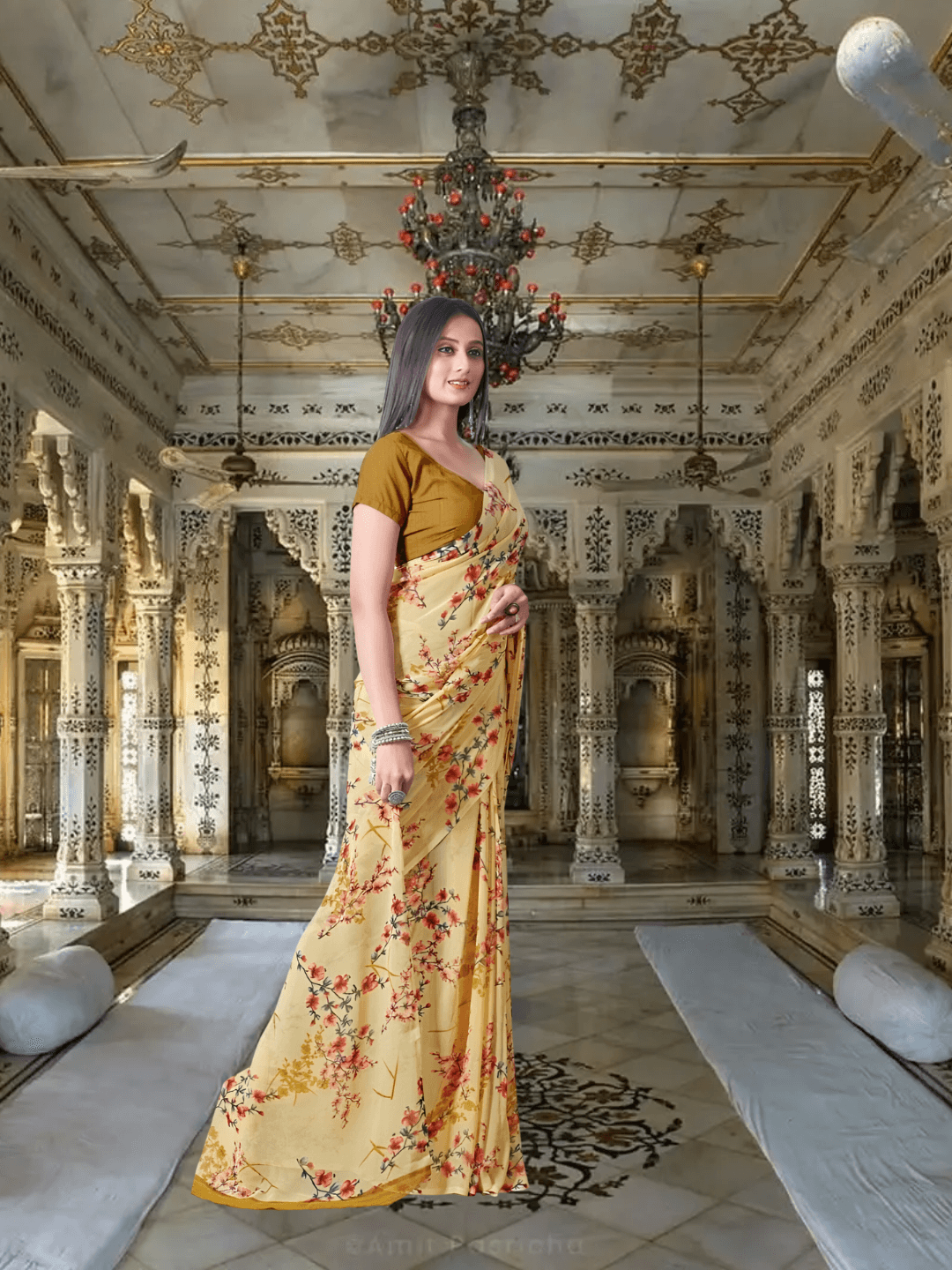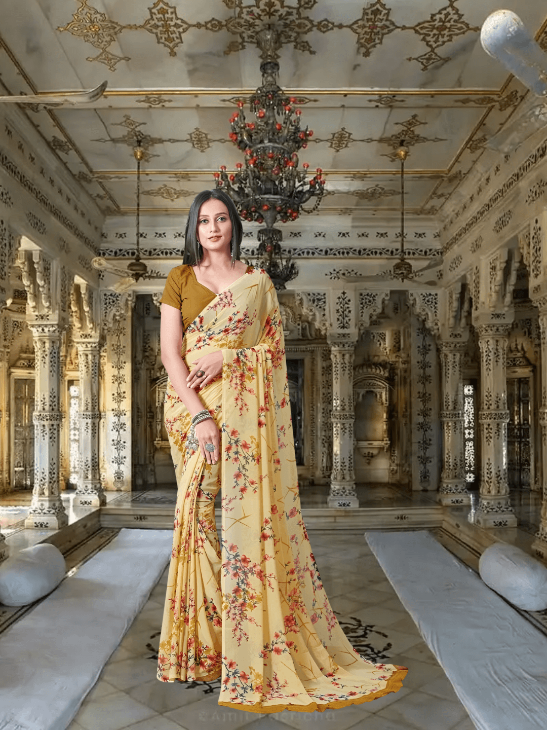 "Golden Riddle" Yellow Georgette Saree – Abstract Sunshine Drape