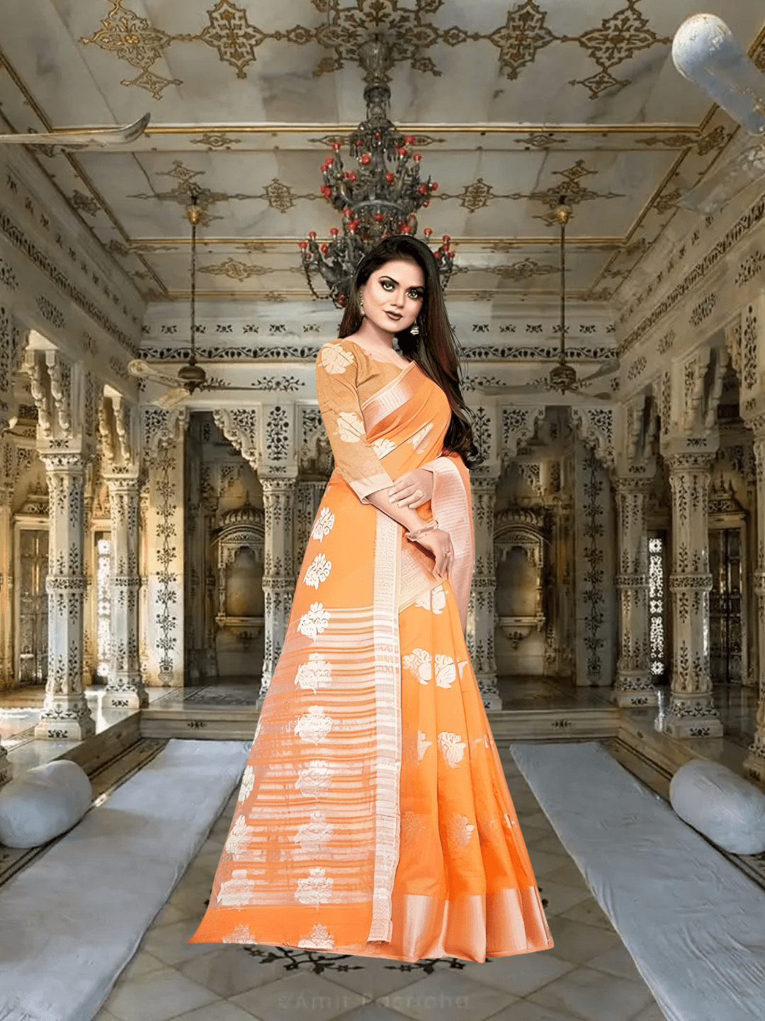 This handwoven orange cotton silk saree is where traditional craftsmanship meets modern elegance: