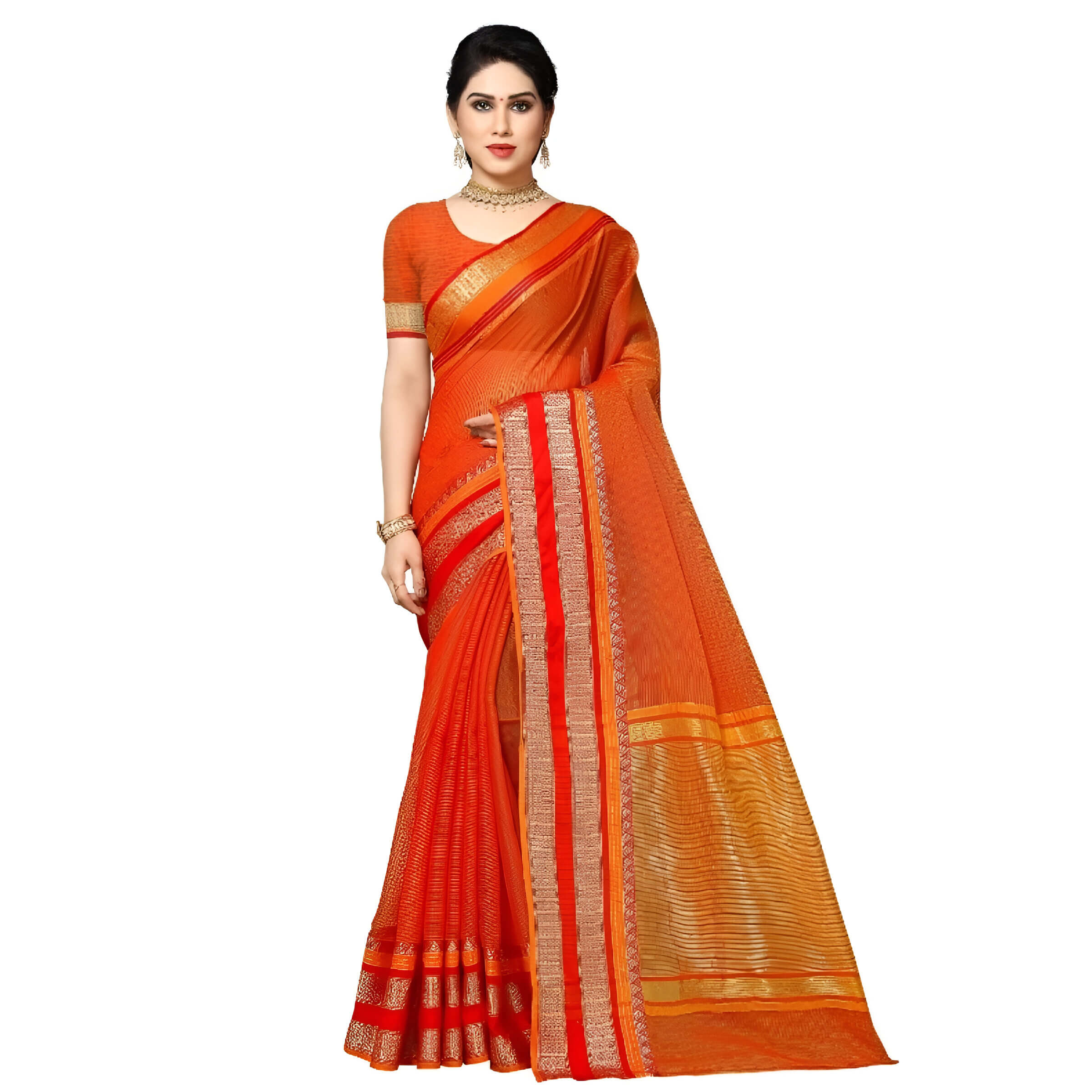 ✔ Radiant gold + orange dual borders – elegant enough for temple visits, bright enough for festivals