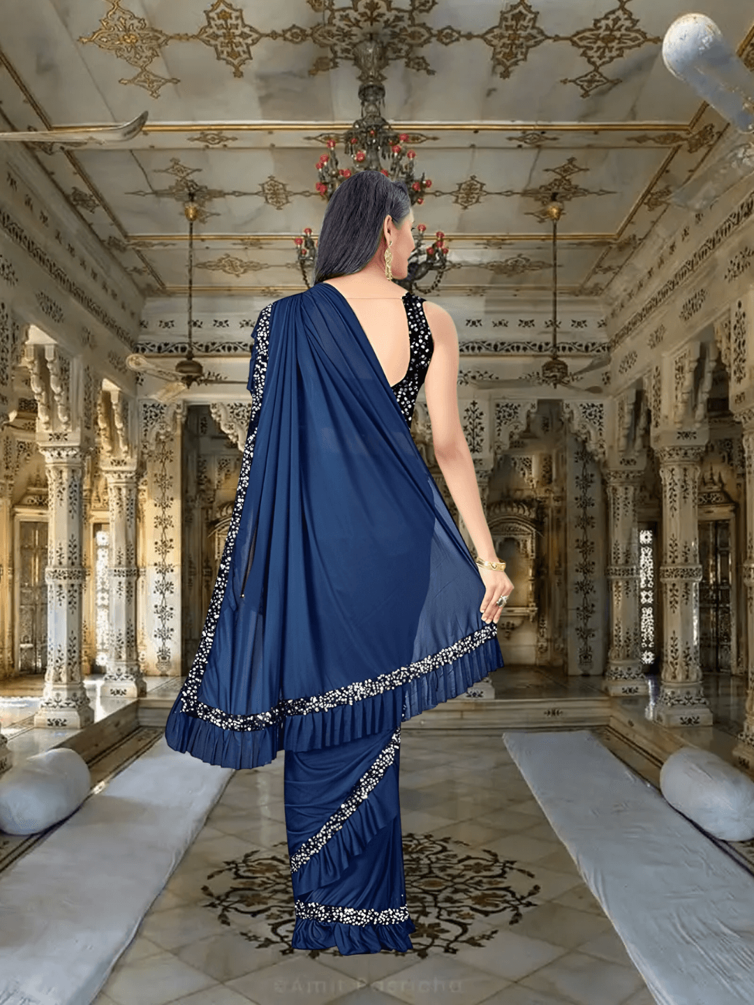 "Midnight Sapphire" Lycra Saree – Deep Navy with Blouse