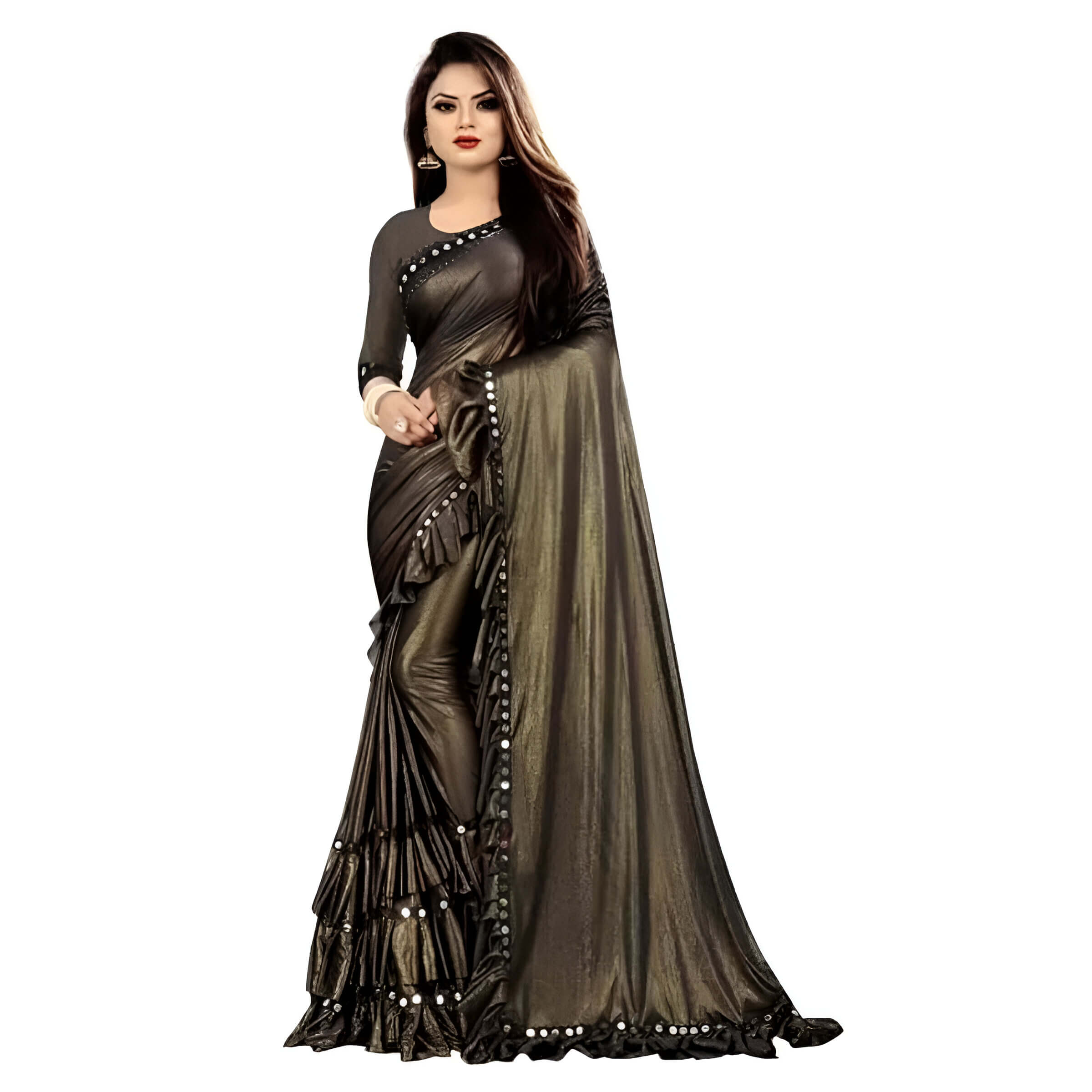 "Mocha Silk" Lycra Saree – Rich Coffee Shade