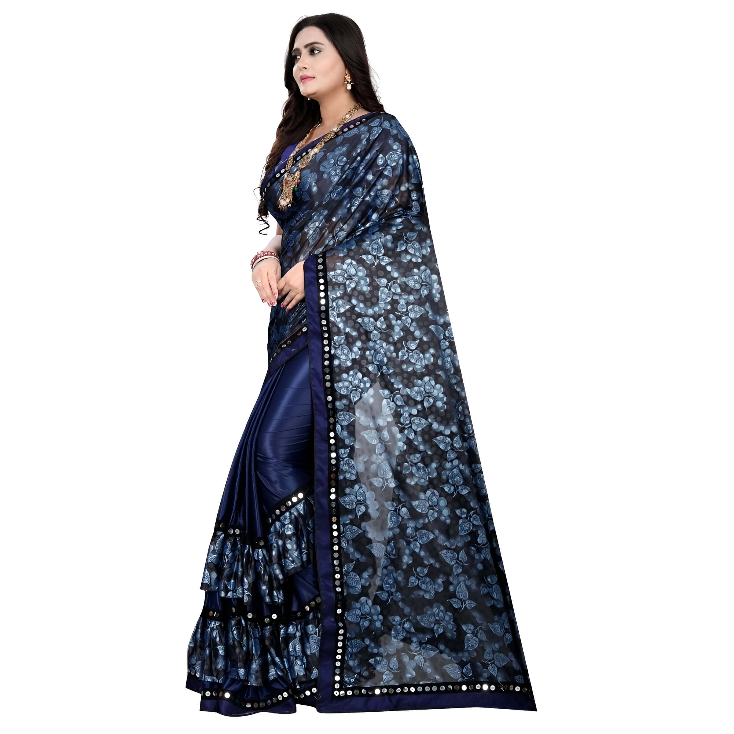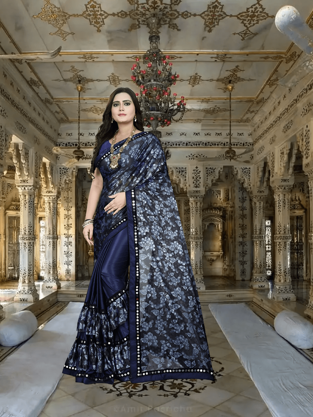 "Noble Midnight" Navy Lycra Saree – Gilded Wing Edition