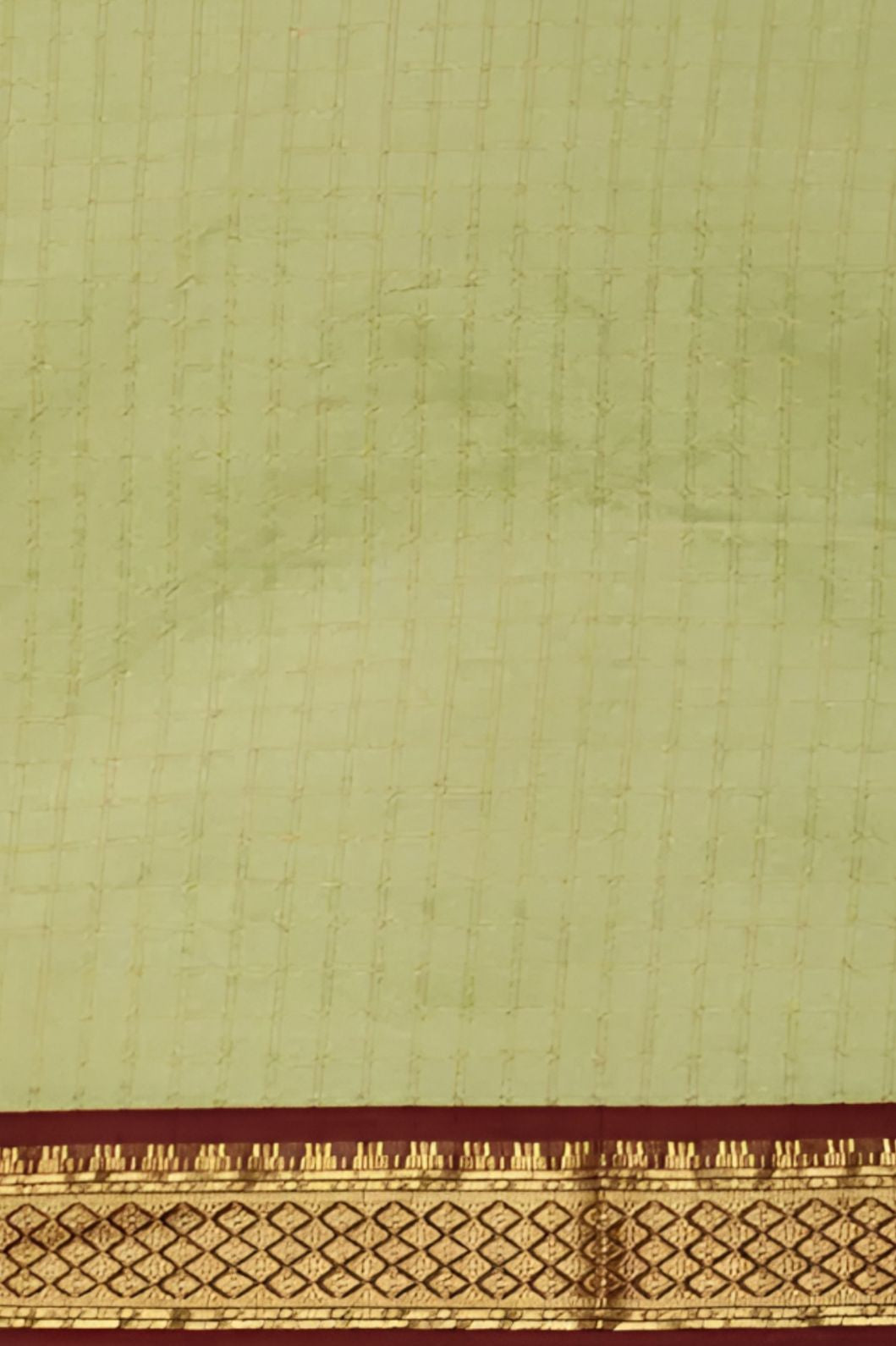 a cotton silk saree in warm olive tones, softened by subtle checks and shaped by tradition.