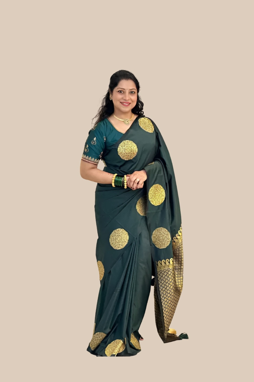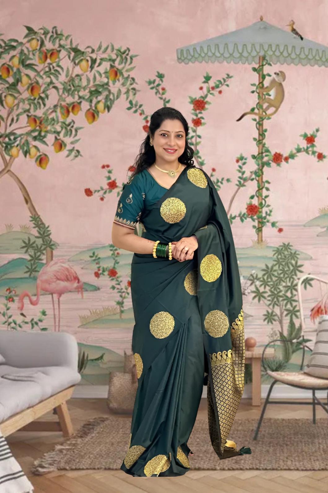 Introducing Vrinthikaa Nirvaana, CELESTINA’s rarest green silk printed wonder.