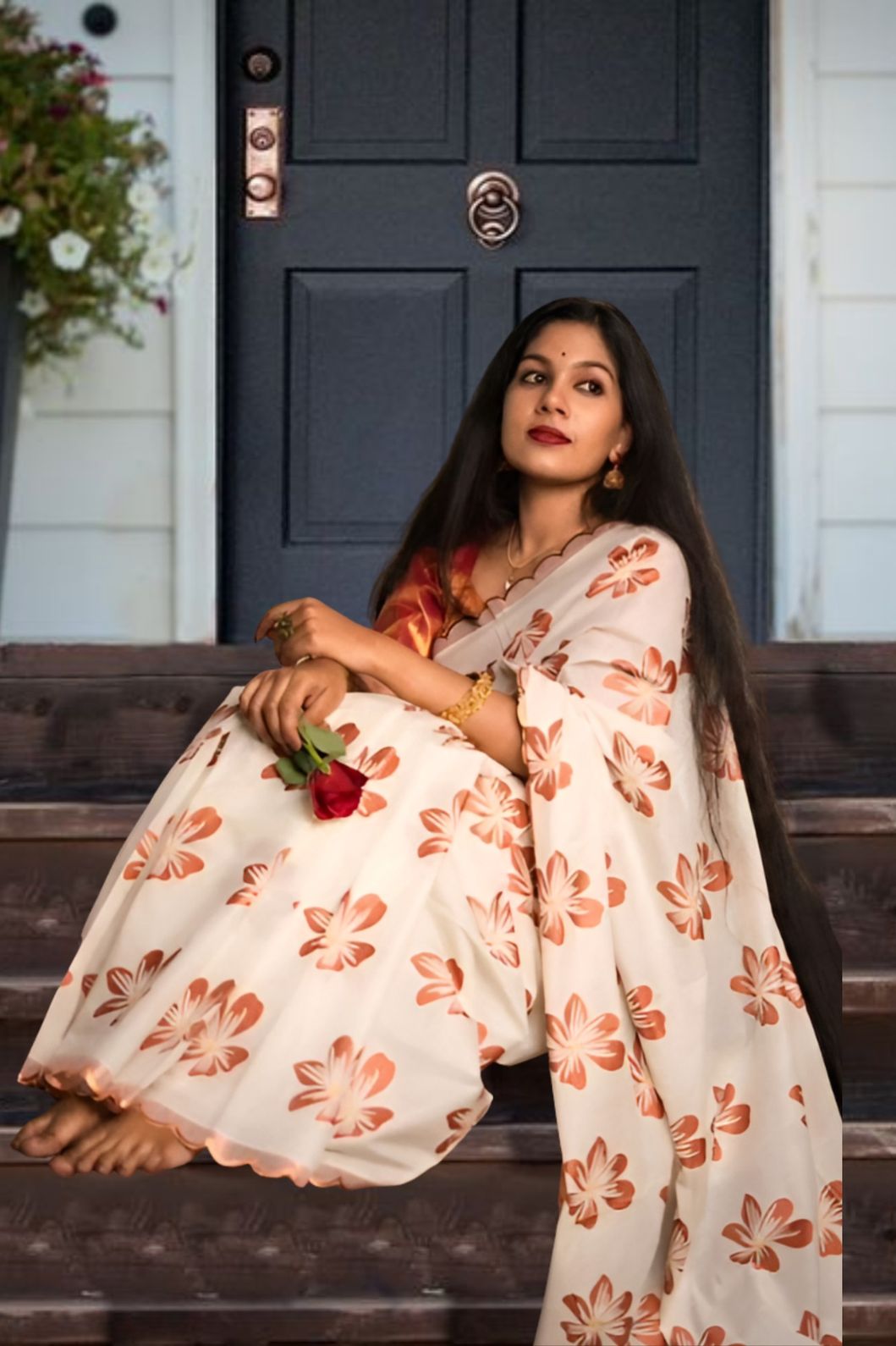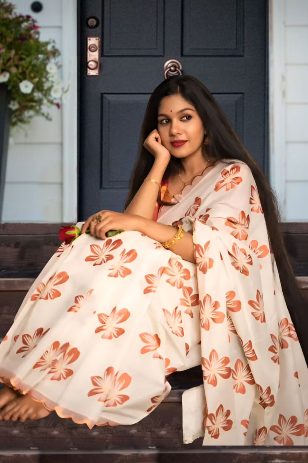 Introducing Pushkara Viraaja, CELESTINA’s most floral silk printed saree yet.