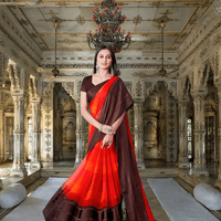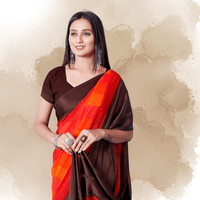 For the woman who believes true elegance needs no prints, this solid red-and-brown satin patta saree is your canvas for understated power. The rich crimson base seamlessly blends into chocolate brown accents, paired with a matching brown blouse for monochromatic mastery.