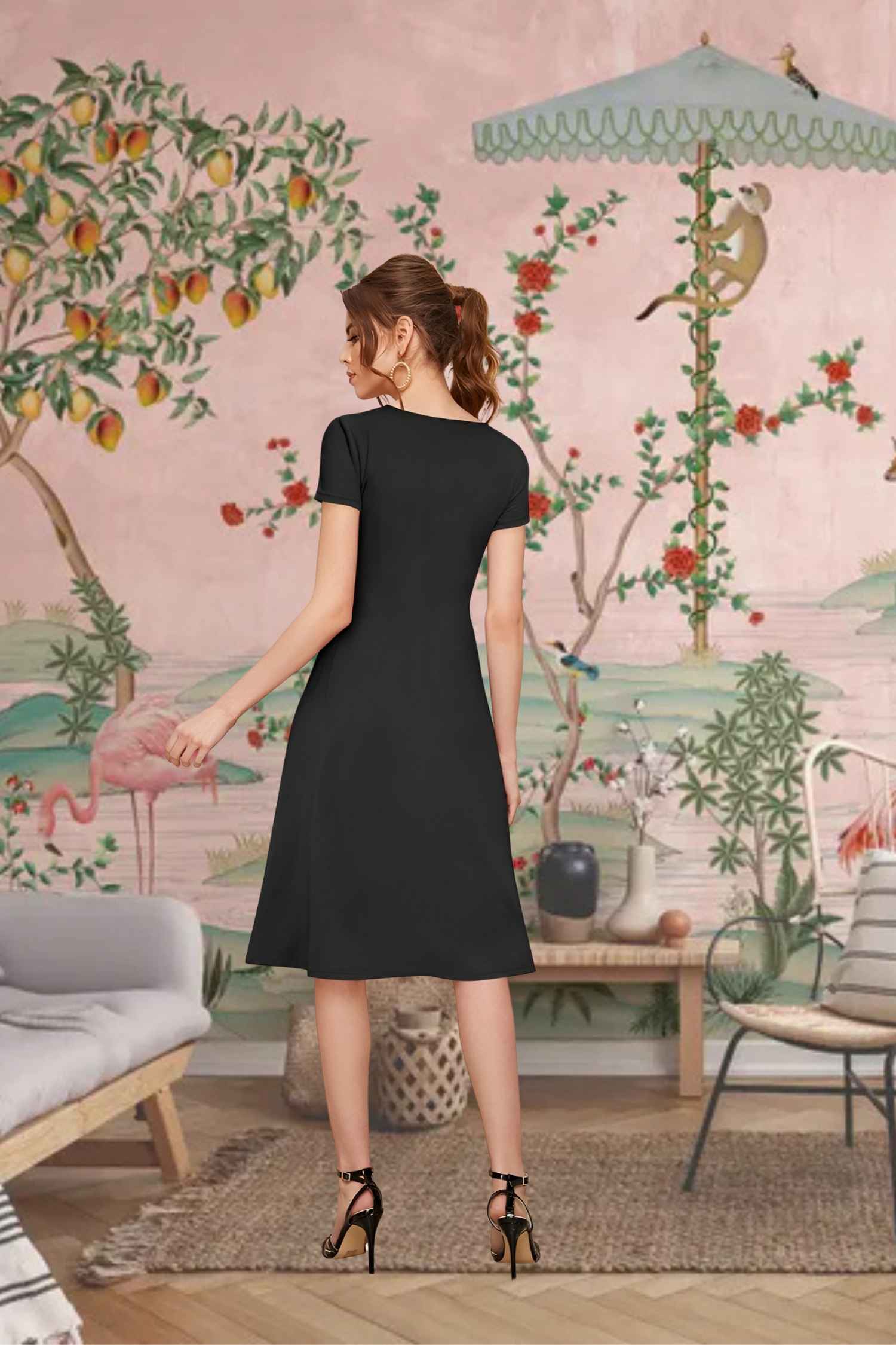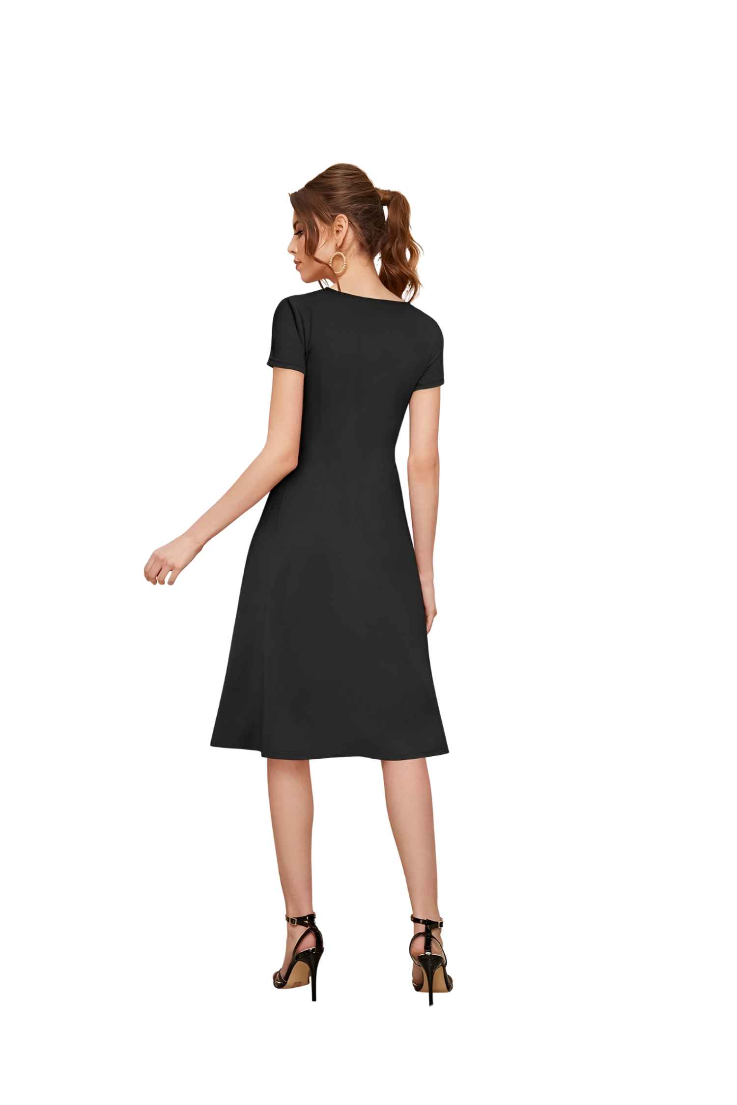 This cap-sleeve, curve-loving black dress is your silent statement. 🖤