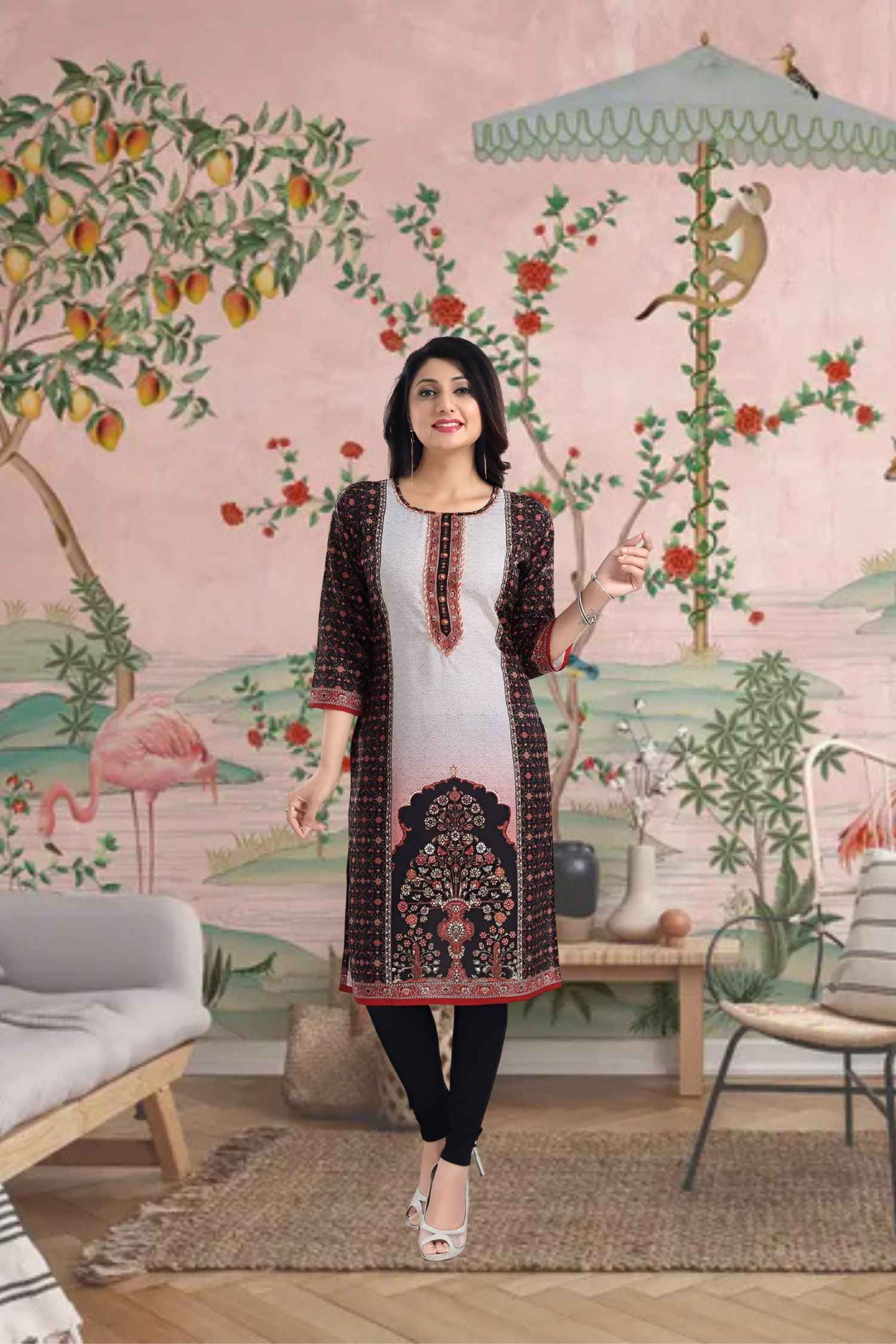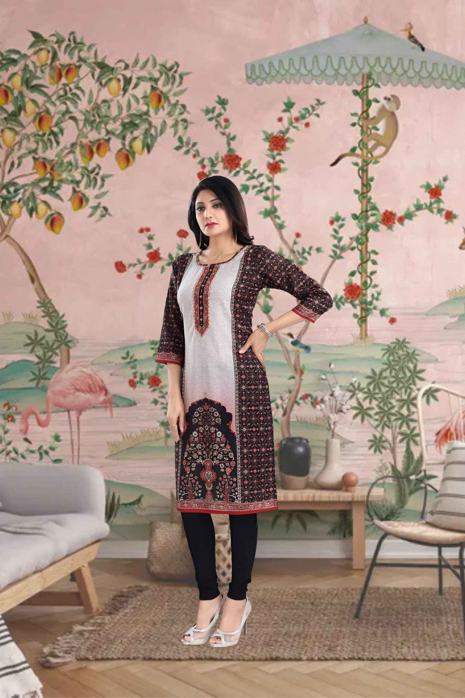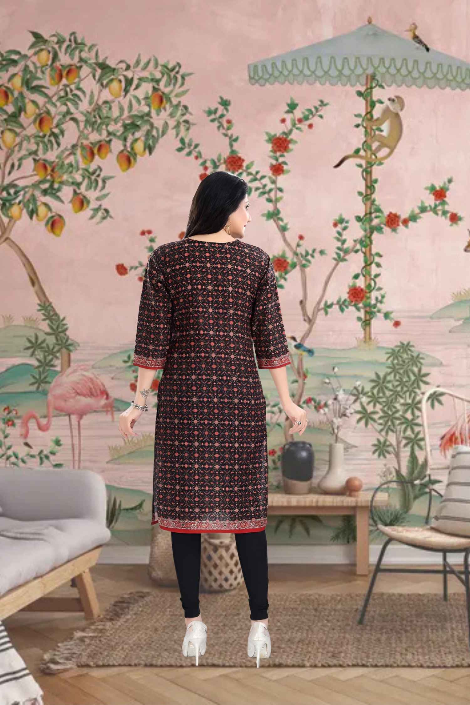 This kurti moves like a rediscovered folktale… 3/4 sleeves that flutter like turning pages, a hemline dipped in oak gall ink, and a hue stolen from the edges of illuminated letters. For those who dress in whispered histories.