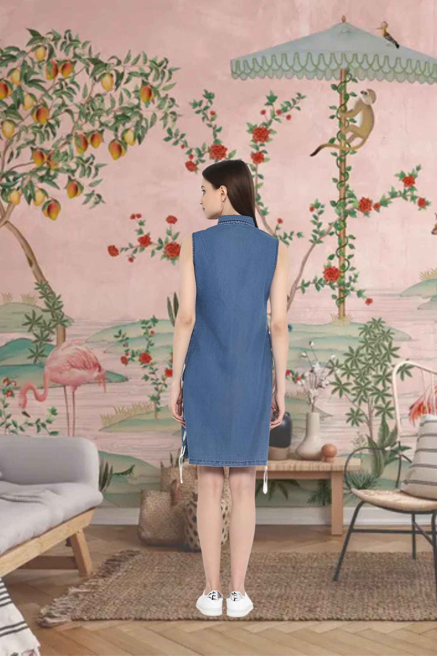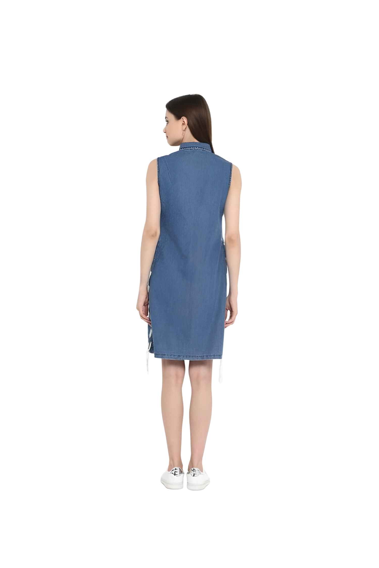 The Skyline Siren is your bare-armed love letter to city summers—a sleeveless denim dream that cuts through heat like a breeze down alleyways.