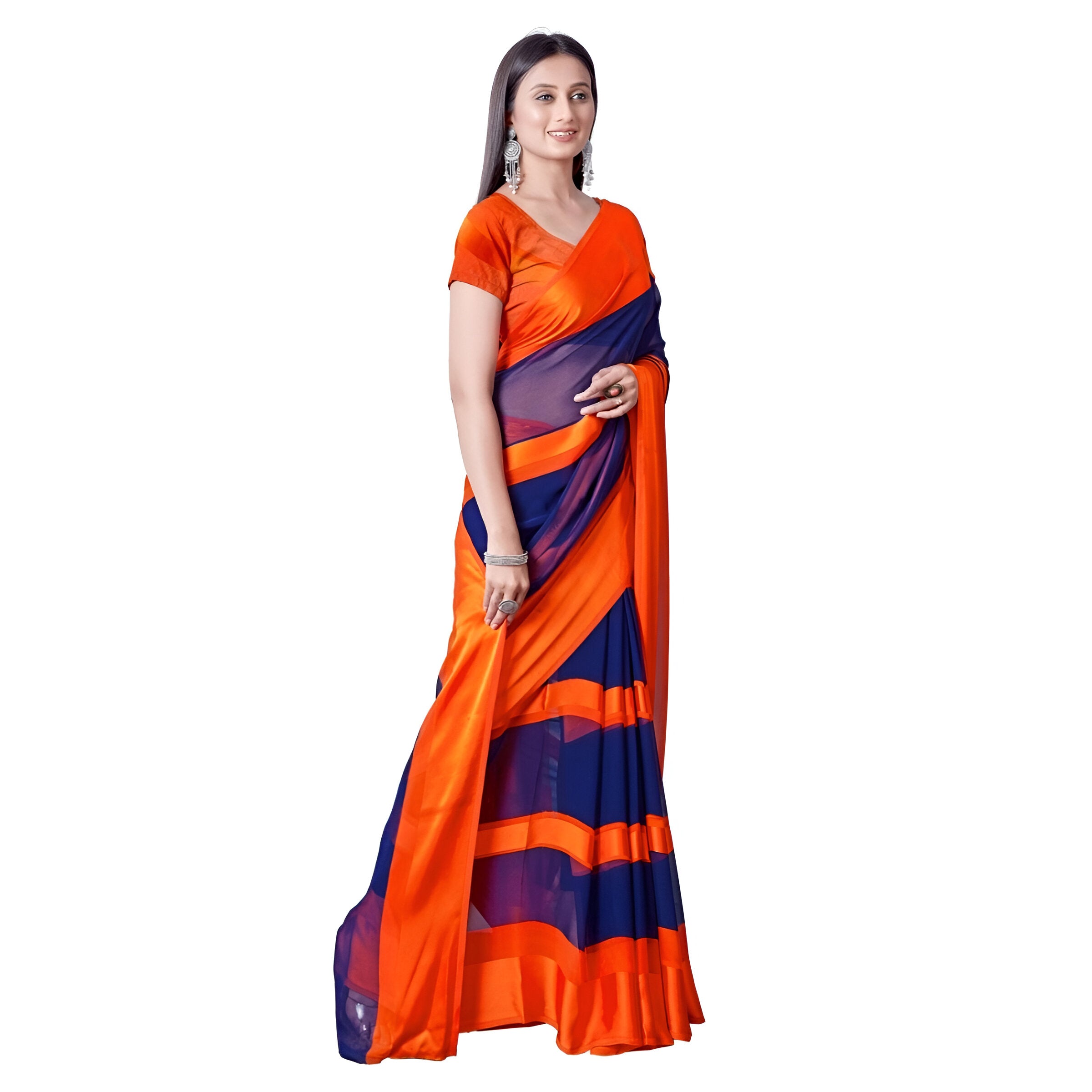 "Sunset Mirage" Orange & Navy Solid Satin Saree – Pure Royalty