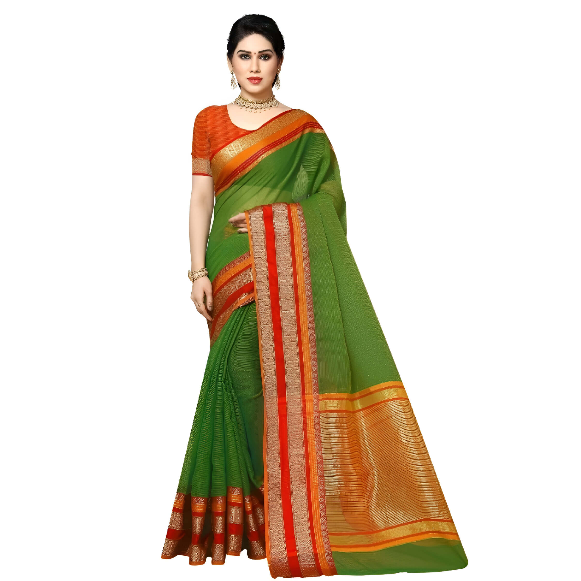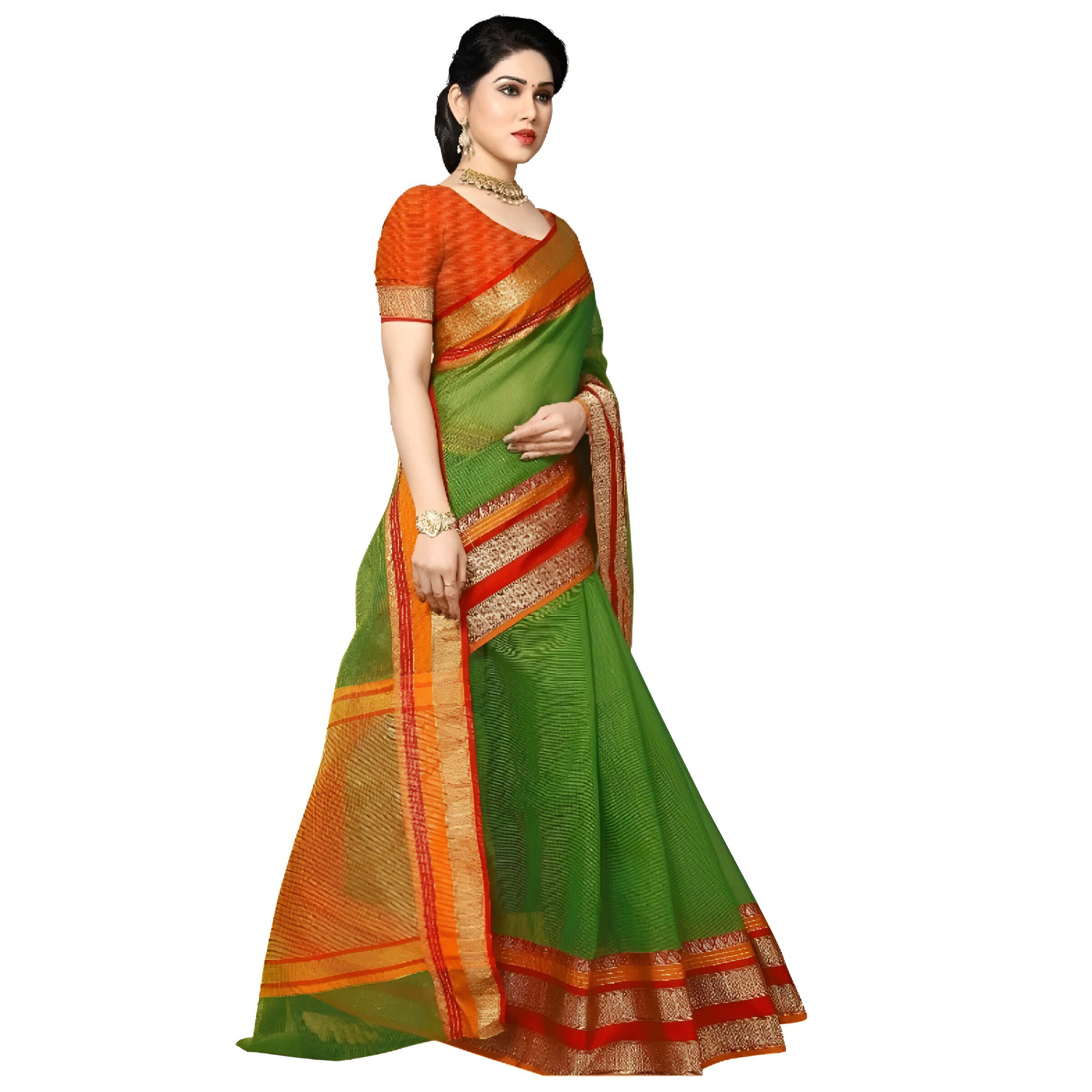 “Vanam Varnika” Kota Doria Cotton Saree – Forest Woven Fine
