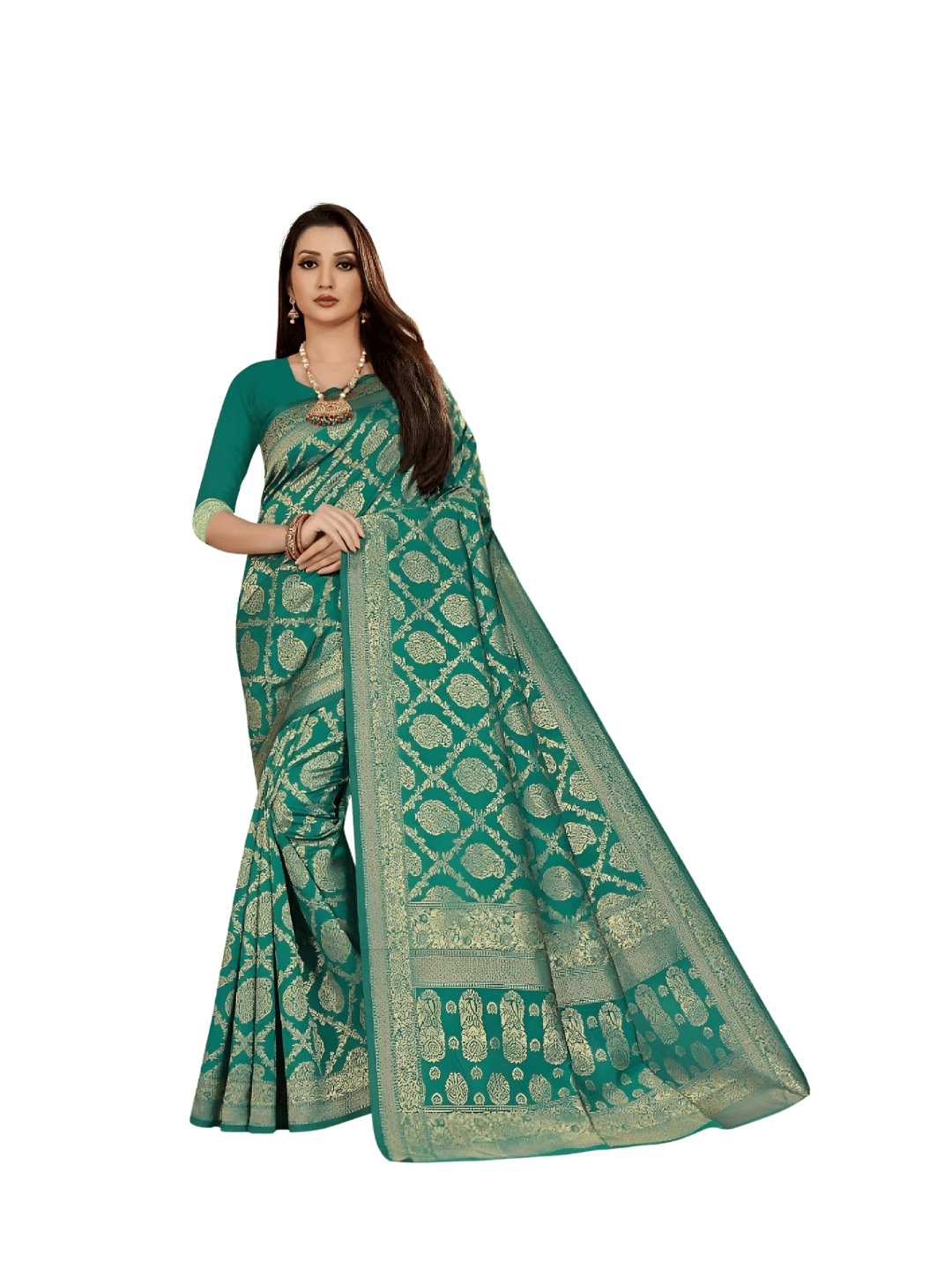 Step into elegance shaped by centuries. Verdant Varnam isn’t just a saree—it’s a celebration of tradition reimagined in bold green. This Jacquard Kanjivaram silk saree captures the finesse of temple artistry and abstract imagination through golden threads that shimmer like morning rituals.