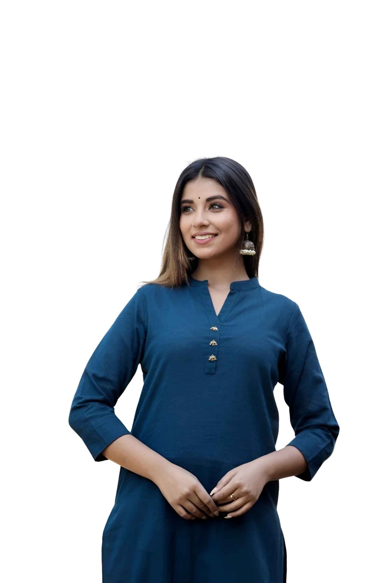 Vireli Vesper isn’t just fabric; it’s the embodiment of twilight. A kurti that wraps you in the cool calm of the night, where the last whispers of sunset meet the stillness of the desert night.